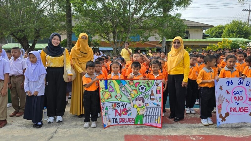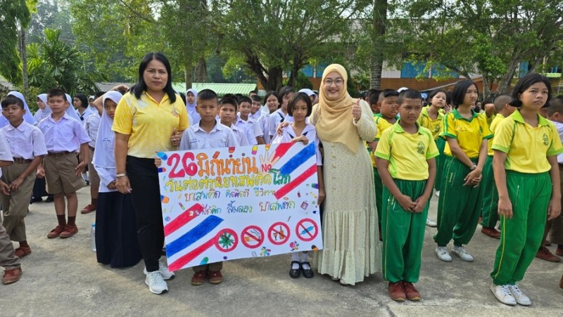 วันที่ 26 มิถุนายน 2567 นายสุภาพ ทองน้อย ผู้อำนวยการโรงเรียนชุมชนบ้านปาดัง นางสาววรวรรณ เจยาคมณ์ นางสาวรอฮานิง อาแว รองผู้อำนวยการโรงเรียนชุมชนบ้านปาดัง คณะครู นักเรียนโรงเรียนชุมชนบ้านปาดัง ร่วมกิจกรรม วันต่อต้านยาเสพติด ประจำปีการศึกษา 2567 โดยมีกิจกรรมโชว์โปสเตอร์ รณรงค์การต่อต้านยาเสพติดของนักเรียนแต่ละสายชั้น