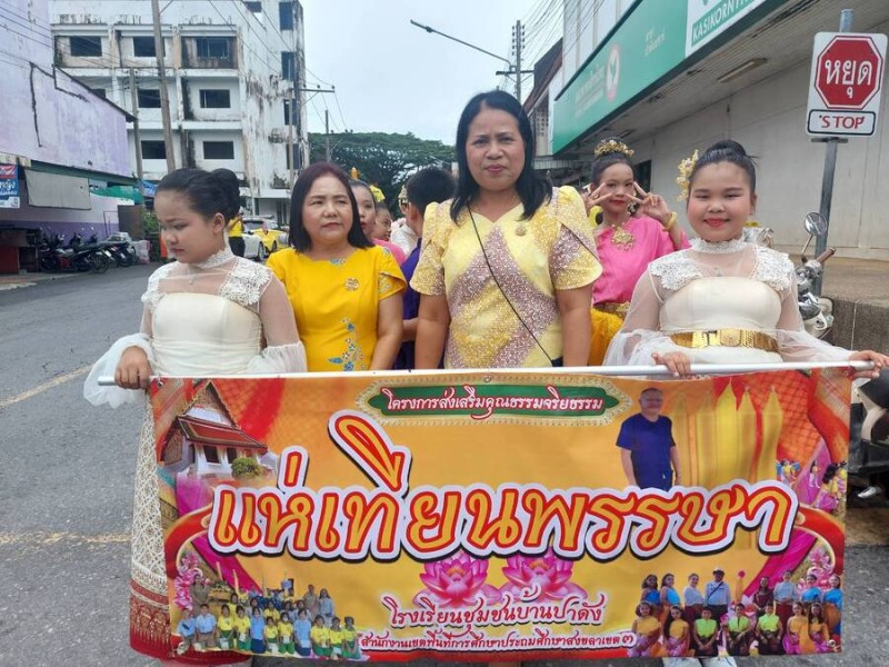 วันที่ 17 กรกฏาคม 2567 นายสุภาพ ทองน้อย ผู้อำนวยการโรงเรียนชุมชนบ้านปาดัง นางสาววรวรรณ เจยาคมณ์ นางสาวรอฮานิง อาแว รองผู้อำนวยการโรงเรียนชุมชนบ้านปาดัง คณะครู และนักเรียนที่นับถือศาสนาพุทธ ชั้น ป.4-ป.6 ร่วมกิจกรรมแห่เทียนพรรษา จากบริเวณ ข้างธนาคารกสิกรไทย สาขาปาดัง ไปยังวัดปาดังเบซาร์ เพื่อเป็นการสืบสารประเพณีอันดีงามและปลูกฝังคุณธรรมที่ดีให้กับนักเรียน |